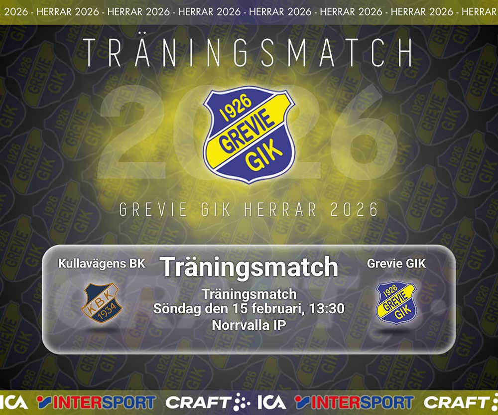 På söndag 1 februari kl. 13.00 spelar Grevie GIK träningsmatch hemma på Bjärevallen när Eskilsminne FF kommer på besök. Vi hoppas att väderprognoserna ljuger lite då det väntas snö och minusgrader. Men fram till vi vet...