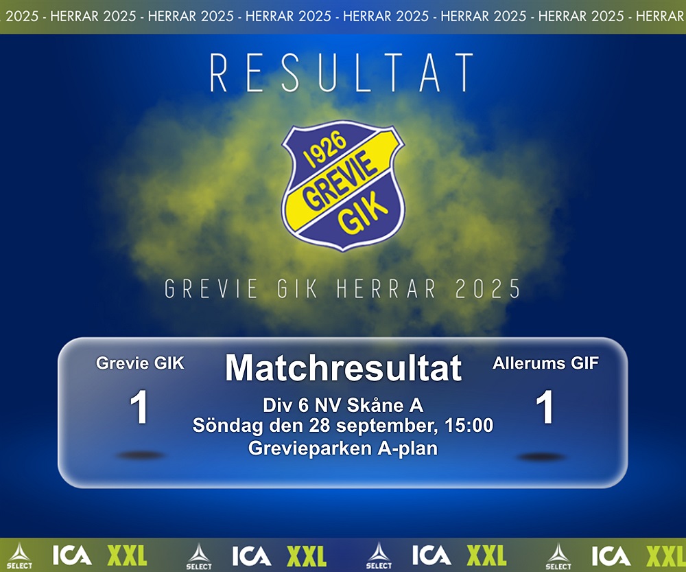 Slutet blev en nagelbitare. Grevie tryckte på framåt och både Arvidsson och Filip Bengtsson hade stora möjligheter att avgöra. Bengtsson tvingade Allerums målvakt till en kvalificerad räddning, och i slutminuterna var Arvidsson ytterst nära att bli matchhjälte när bollen dansade på ribban.